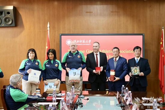 在欢迎仪式上,雷儒金对爱尔兰盖尔运动协会代表团的到来表示热烈欢迎。他说,体育作为一种跨越国界的语言,是促进不同文化之间理解与合作的重要桥梁。爱尔兰盖尔式运动作为爱尔兰传统文化的瑰宝,不仅展现了体育的独特魅力,也体现了团结与合作的精神。此次访问为双方在体育教育、训练方法及学生体育活动等领域的合作奠定了坚实基础,将为两国在体育与文化领域的交流注入新的活力。