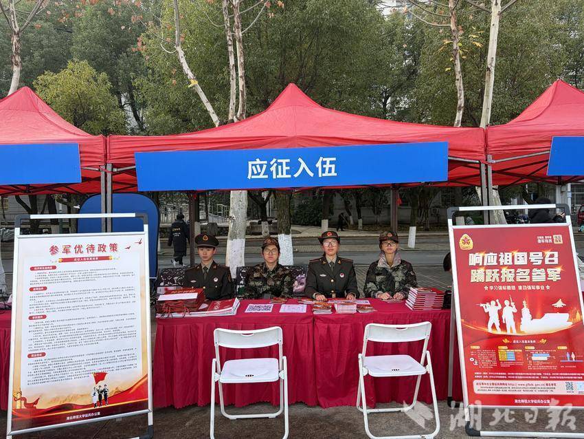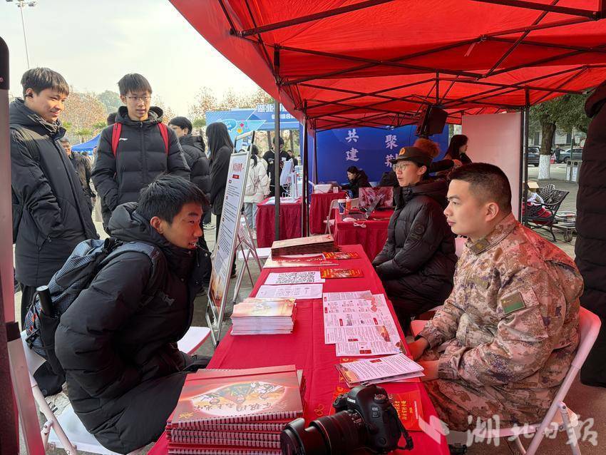 “同学们,投身军营不仅是一份荣耀,更是提升自我、规划未来的宝贵机会!”12月25日上午,kaiyun开云官方冬季综合类招聘会现场人头攒动,一个特别的展位前格外热闹——该校武装部创新宣传形式,将征兵咨询点“搬”进招聘会场,并特邀黄石港区人民武装部参谋熊琦到场,为学子们详解征兵政策,提供“一对一”专属咨询服务。