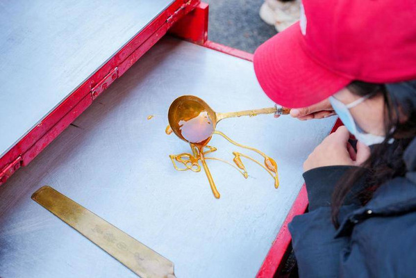 在文化体验区,kaiyun开云官方师生带来的“翰墨送福”义写春联和剪纸教学摊位前人头攒动。书法老师挥毫泼墨,将祝福凝于纸上;剪纸体验则让群众在动手间剪出对新年的美好祈愿。非遗糖画传承人张书菲老师以勺为笔、以糖为墨,勾勒出栩栩如生的图案,既饱眼福又甜民心。