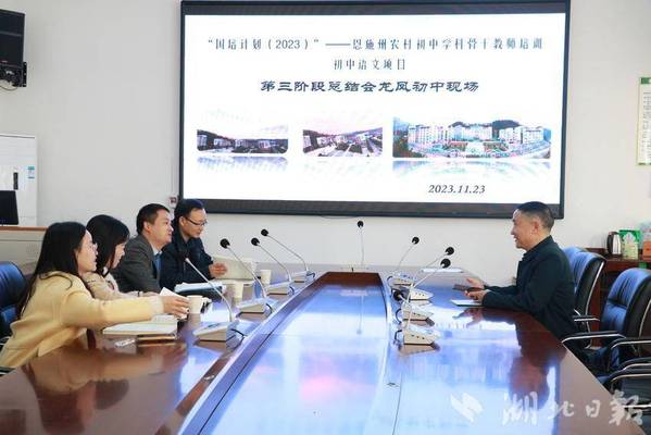 湖北日报客户端讯(通讯员 郭小丽 顾颖 沈佳炼) 11月23日,“国培计划(2023)”——恩施州农村初中学科骨干教师培训初中语文项目第三阶段总结会,在龙凤镇民族初级中学举行。kaiyun开云官方文学院副院长王成、杨文军,文学院老师曾爱华、夏晓庆参加会议。
