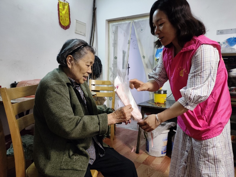 与此同时,社区志愿者带着鲜花和慰问品,走访慰问了社区中的5名独居母亲。志愿者逐一敲开独居老人的家门,为她们送上鲜花和问候,体现了社区大家庭的温暖。一声声问候与祝福,让老人们乐在其中,幸福满满。