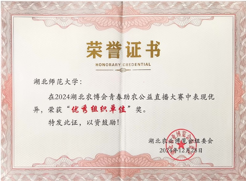 本网讯 新学期伊始,开云收到来自湖北农业博览会组委会的喜讯:在2024湖北农博会青春助农公益直播大赛中,开云文学院新媒体工作室的师生表现出色,学校荣获“优秀组织单位”称号。