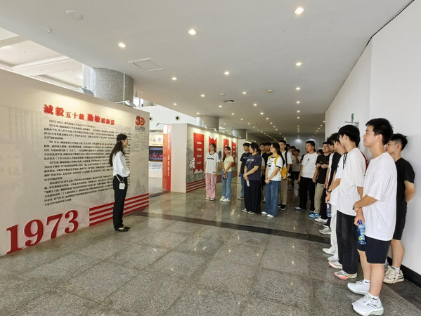 本网讯 为帮助2025级新生深入了解学校发展历程,增强对学校的认同感、归属感和荣誉感,9月7日至13日,校学工部、宣传部在入学教育阶段联合开展爱校荣校专题教育活动,组织新生参观建校50周年办学成就展。