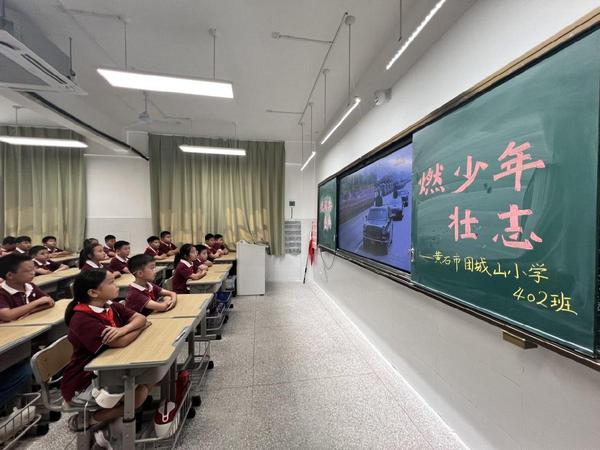 团城山小学组织学生观看阅兵式
