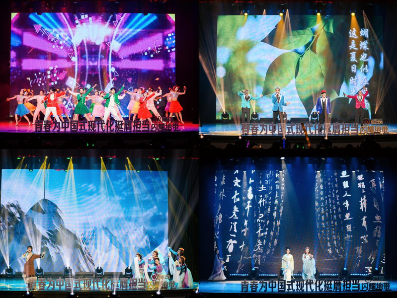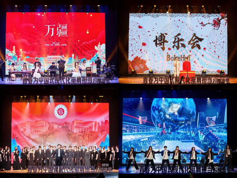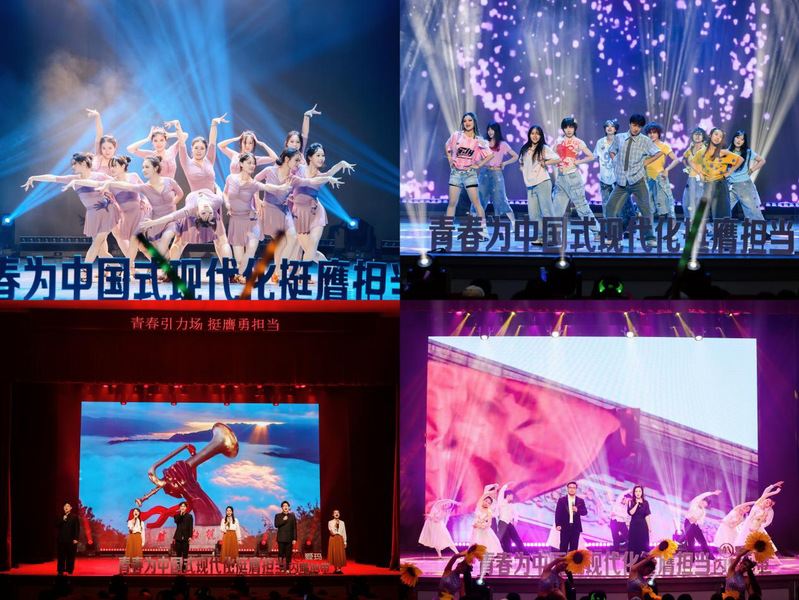 活动在舞蹈《逐梦青春》中拉开帷幕,灵动的舞姿瞬间点燃现场氛围,尽显青春蓬勃朝气。留学生代表演唱歌曲《夏日之歌》饱含异国情怀,独特旋律勾勒出别样风情画面;新生代表带来的歌伴舞《北京的金山上》重现经典,引发观众强烈的情感共鸣;校园十佳歌手演唱的歌曲《伯虎说》融合戏曲与rap,创新形式碰撞出新颖艺术火花;校大学生艺术团演绎的《国风雅韵》尽显东方美学,传统元素呈现出典雅文化魅力。音乐舞蹈学院师生表演的器乐合奏《万疆》,以民乐演绎华夏壮阔;相声《校园趣事》再现校园生活点滴,合唱《时光里的告白》温情动人;街舞《乘风启航》节奏强劲,充满力量;朗诵《吹号者》致敬先烈,点燃信仰。晚会在歌舞《壮丽航程》中落下帷幕,恢弘的表演为整场汇演画上圆满句号。