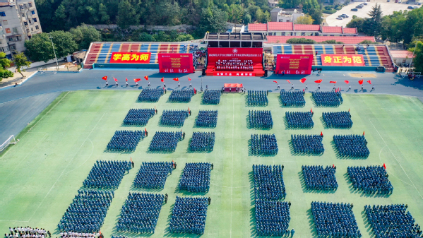 此次大会在抖音、哔哩哔哩等平台进行了同步直播,数万名朋友共赏典礼、点赞不断,纷纷留言表示祝贺。校田径运动场上还设有“青春献礼二十大,强国有我新征程”、“学高为师,身正为范”等展牌和标语,烘托了开学典礼的浓厚氛围。大会上全体新生以“青春告白祖国”,表达了爱党爱国爱校的心声。