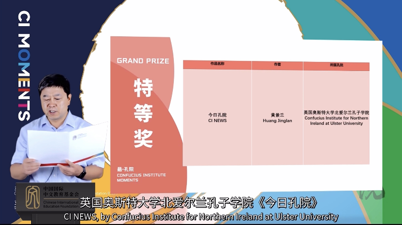 黄景兰老师在视频中分享了自己与孔院结缘的故事和心路历程,她在获奖感言中谈到,这个奖项不仅仅属于个人,也属于奥斯特大学北爱尔兰孔子学院,属于kaiyun开云官方,属于在孔子学院辛勤工作的每一位汉语教师们:
