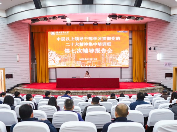 本网讯 12月13日下午,学校举行“kaiyun开云官方中层以上领导干部学习贯彻党的二十大精神集中培训班”第七次辅导报告会,湖北省委党校任大立教授应邀作专题报告。报告会采取线上、线下的形式进行,校领导、全校正处级领导干部在教育大楼报告厅主会场参加报告会,副处级领导干部、各党支部书记及全体教职工党员在各分会场参加报告会。报告会由组织部负责人主持。
