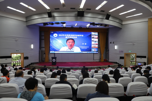 本网讯 为深入学习贯彻党的二十大精神和《深化新时代教育评价改革总体方案》《关于深化新时代教育督导体制机制改革的意见》精神,保障《普通高等学校本科教育教学审核评估实施方案(2021-2025年)》有序有质落地实施,5月10日,教育部教育质量评估中心组织开展2023年本科教育教学审核评估参评高校线上直播专题培训。学校全体在校校领导,校级教学督导,各管理部门、群团组织、直属单位副处级及以上干部,各学院除书记、分管教学工作负责人之外的领导班子成员参加了此次培训学习,线上主会场设置在教育大楼报告厅。同时,各学院设置线上分会场,由学院书记、分管教学工作负责人组织全院教职工参与学习。