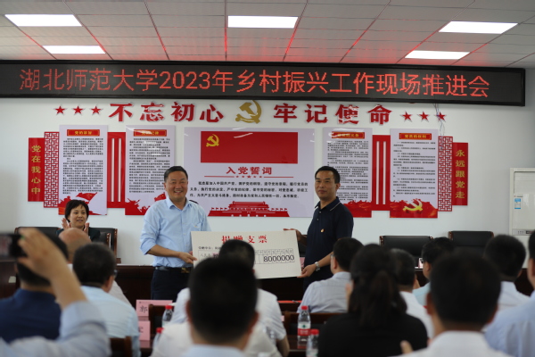 在新落成的张畈村党群活动中心,学校召开2023年乡村振兴帮扶工作现场推进会。活动现场,校长雷儒金代表学校党委向张畈村捐赠乡村建设专项资金,学校工会与张畈村签订了4万斤西瓜采购订单,以消费带动产业发展。