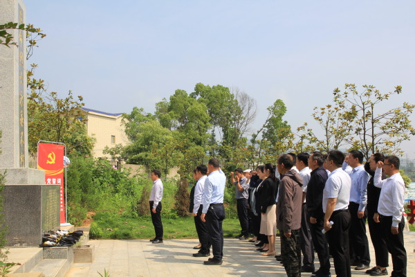 在张畈村红色广场,李宏带领大家走到纪念碑前并敬献鲜花,深切缅怀革命先烈。全体党员干部举起右拳,重温入党誓词。宣誓后,全体人员依次缓步绕行,瞻仰烈士纪念碑,认真聆听老党员讲述革命先辈、英雄人物的先进事迹,接受思想和精神上的深刻洗礼。